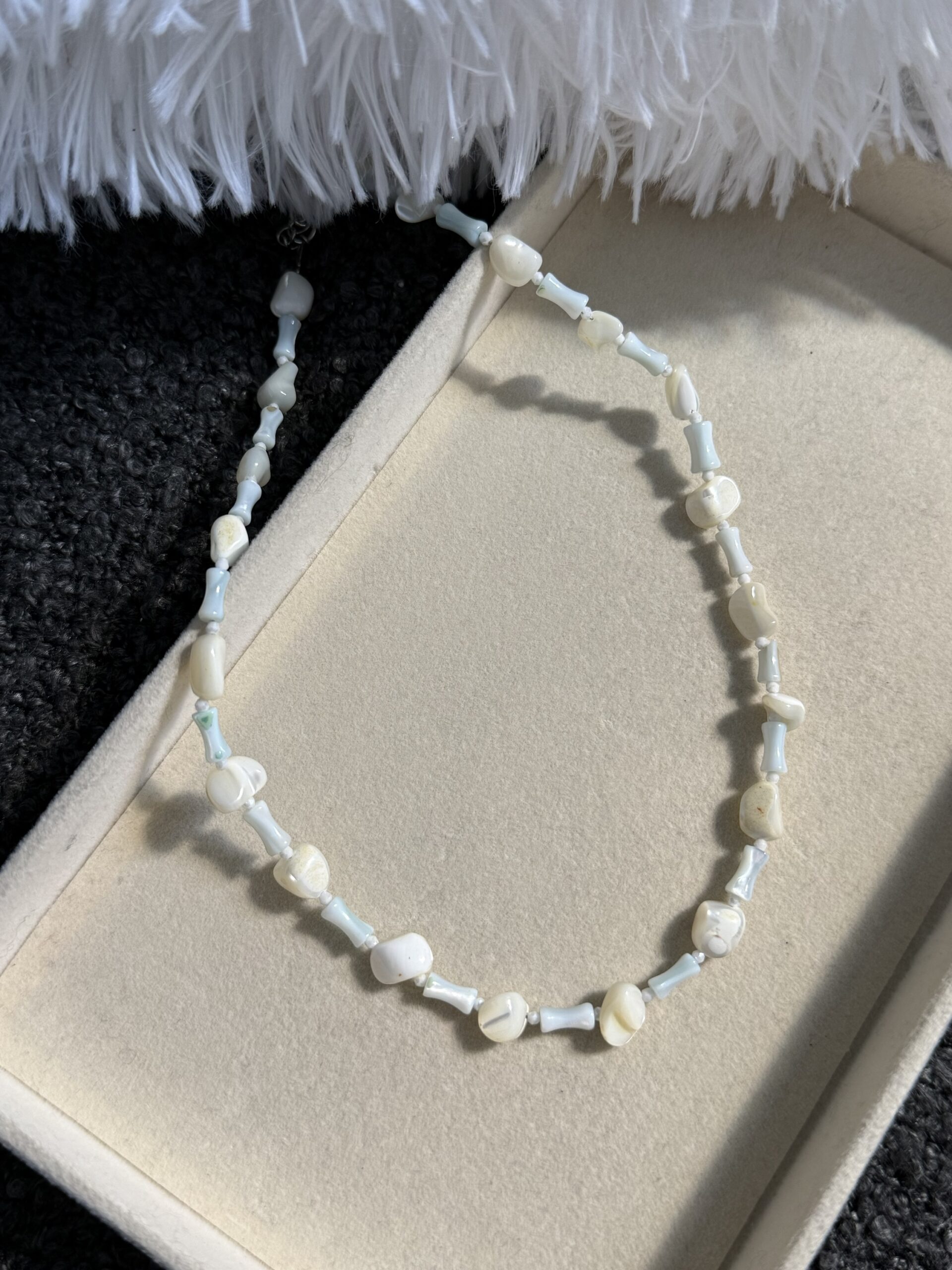 Ατσάλινο 100% χειροποίητο κολιέ με χάντρες φίλντισι και μπλε χάντρες.
