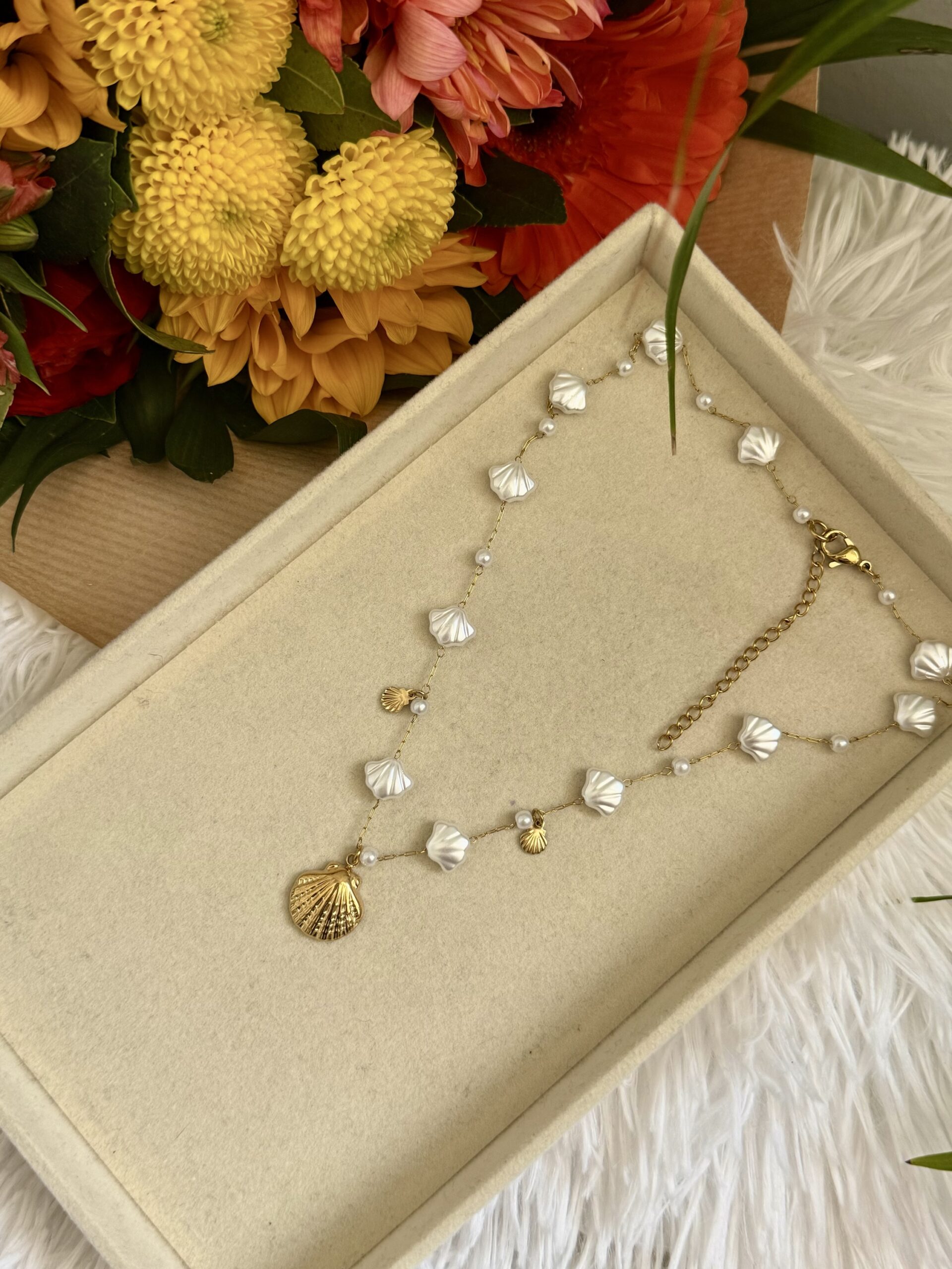 Ατσάλινο 100% χειροποίητο κολιέ με ακρυλικές πέρλες και ατσάλινα κρεμαστά.