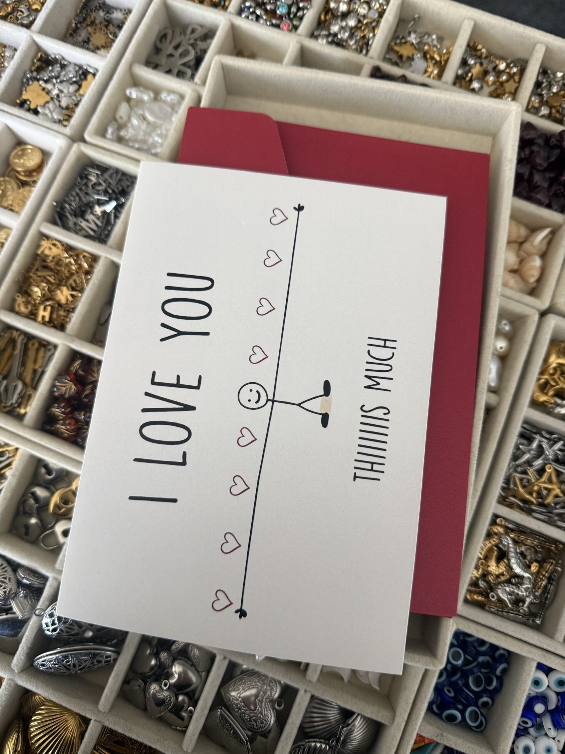 Ευχετήρια κάρτα “I love you thiiiis much”. Έρχεται μαζί με φάκελο.