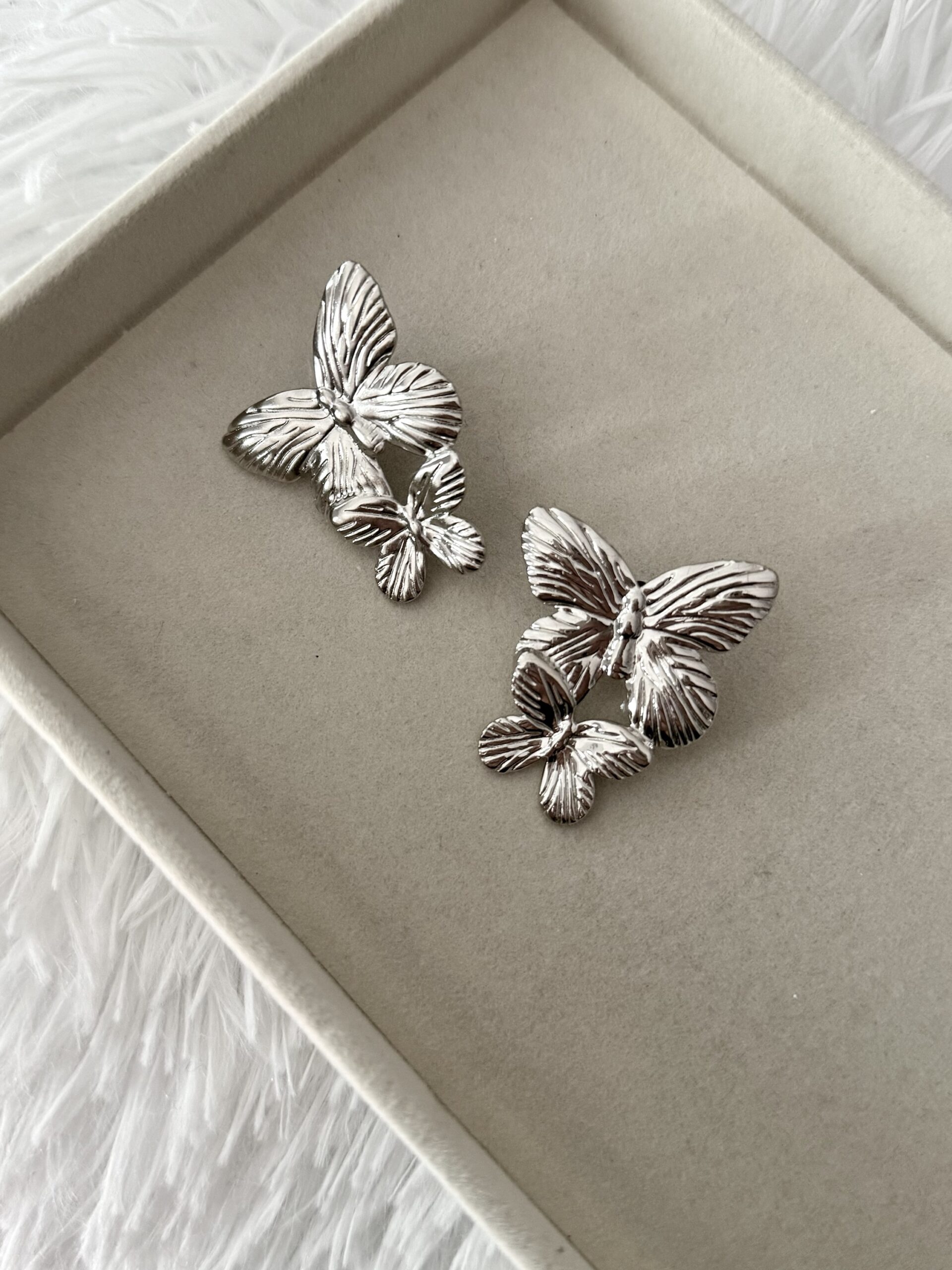 Ατσάλινα καρφωτά σκουλαρίκια με πεταλούδες. Μέγεθος: 4×3 εκατοστά.