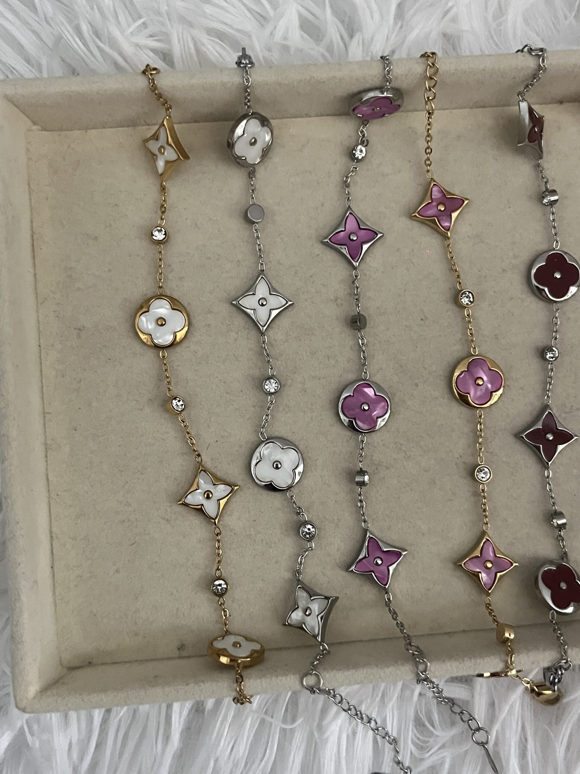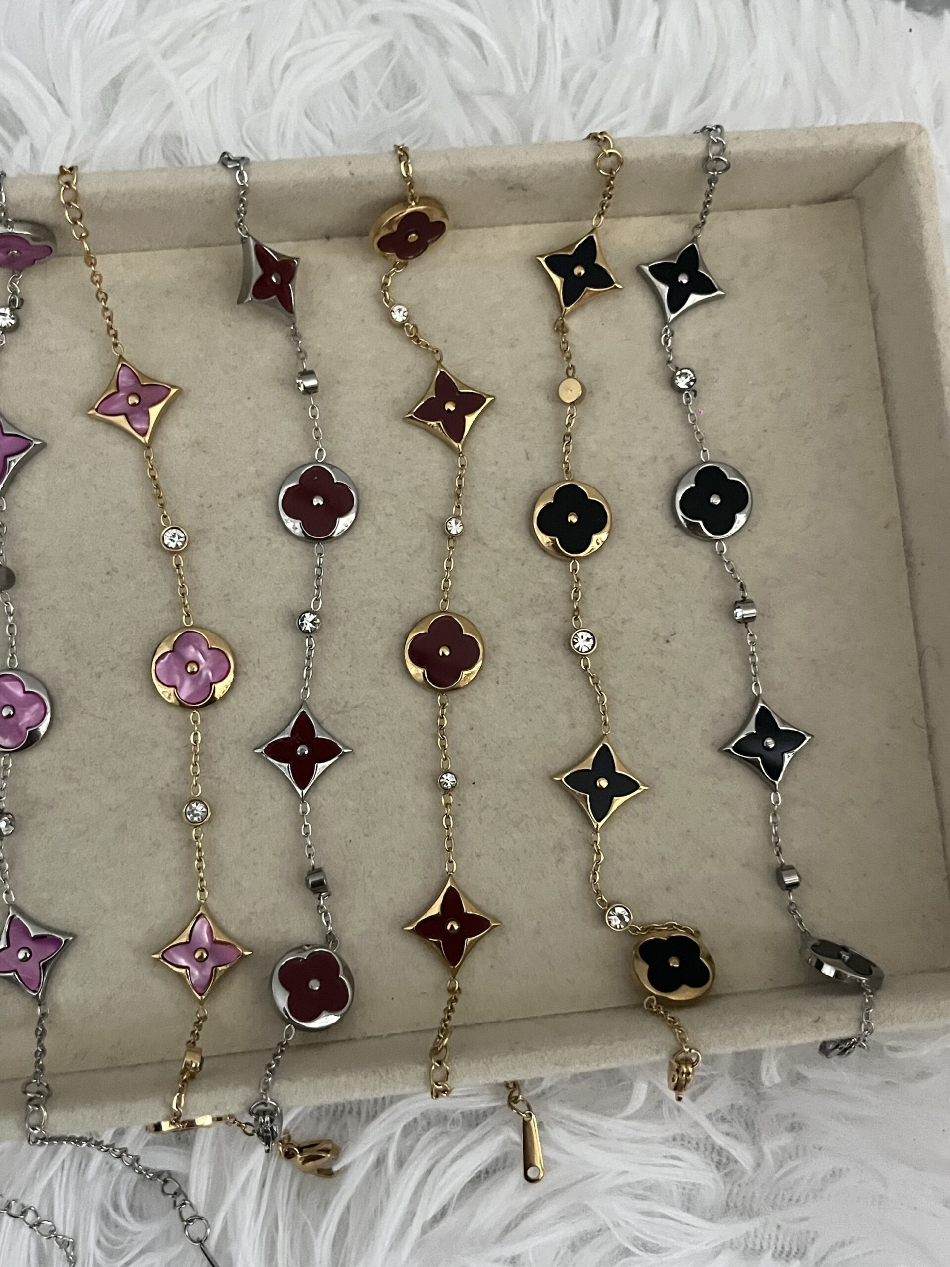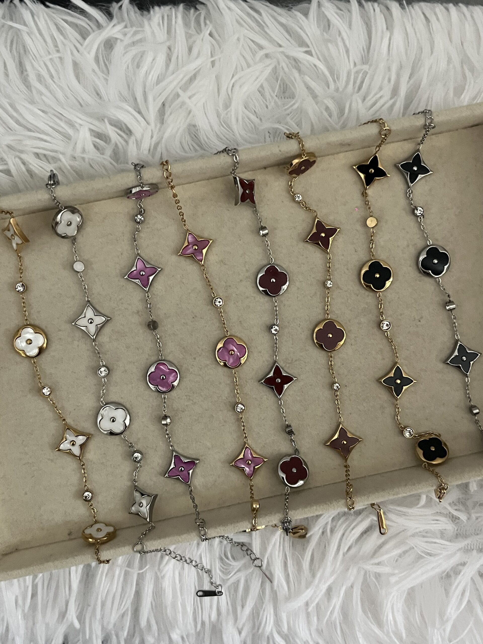 Ατσάλινα βραχιόλια με σχέδιο clover και διαμαντάκια.