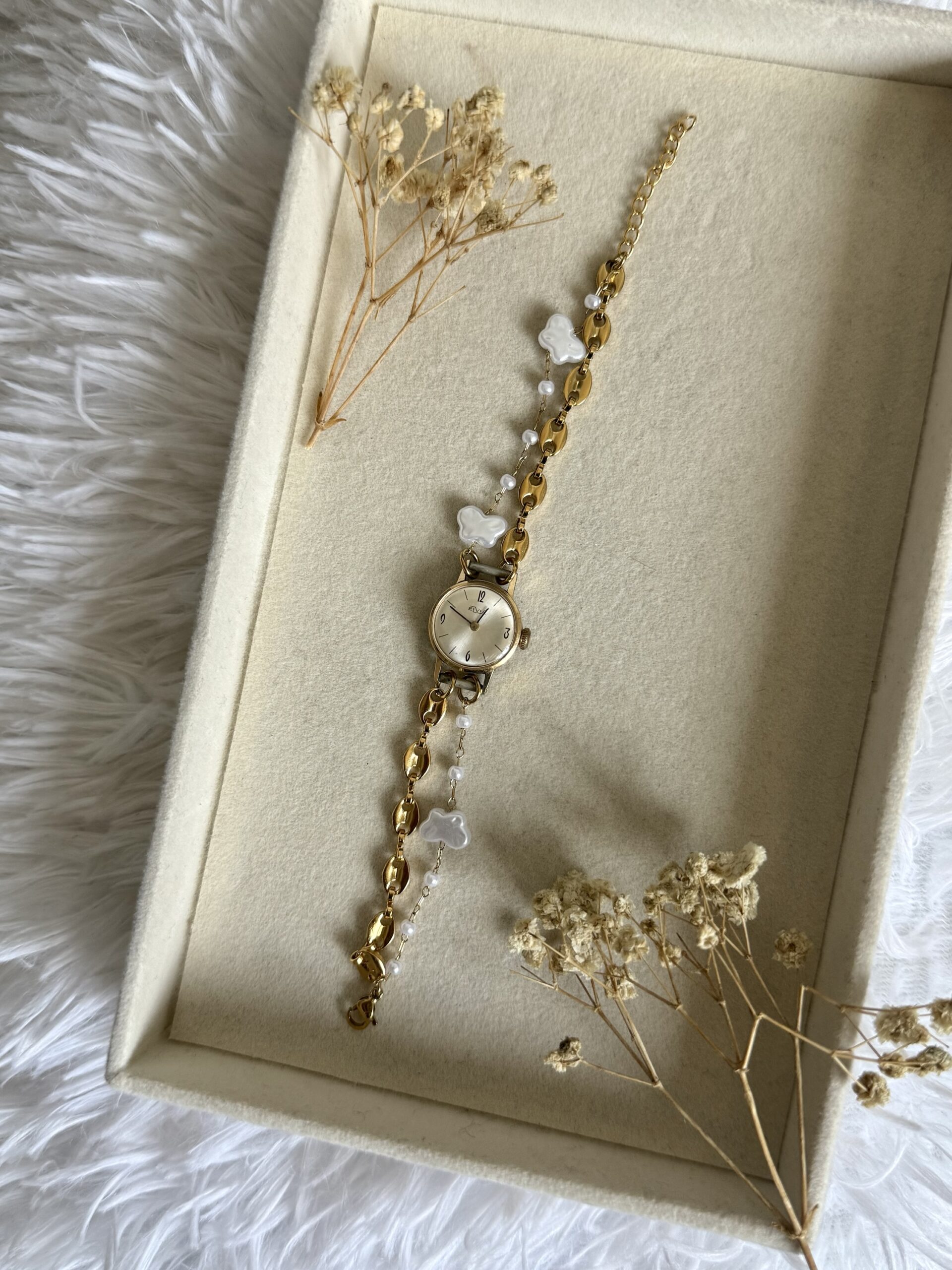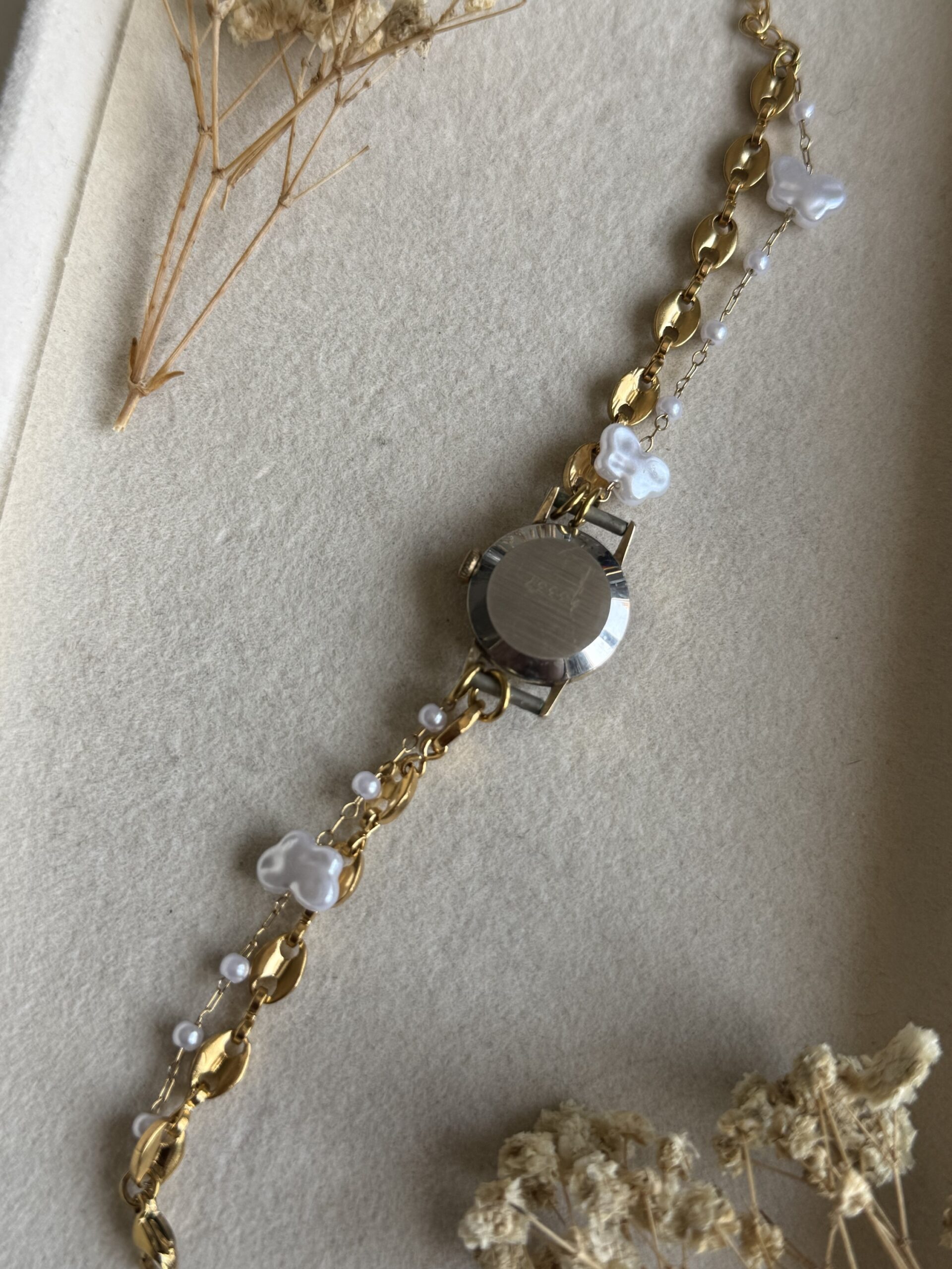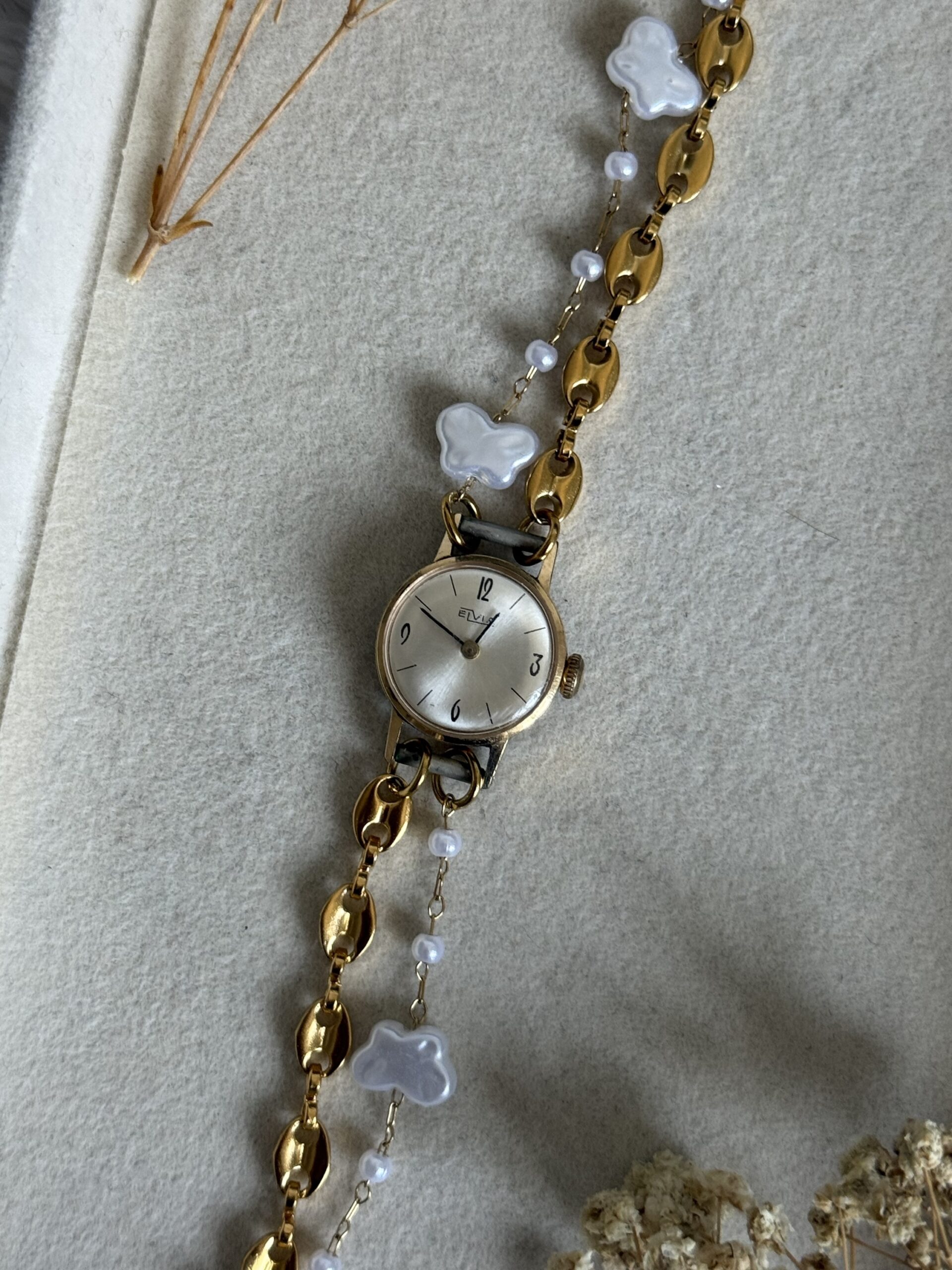 100% χειροποίητο ρολόι/κοσμημα. Φτιαγμένο από άλλο παλιό ρολόι. Ολα τα εξαρτήματα είναι ατσάλινα. Δεν λειτουργεί. Για να λειτουργήσει χρειάζεται αλλαγή μπαταρίας ή επισκευή μηχανισμού.