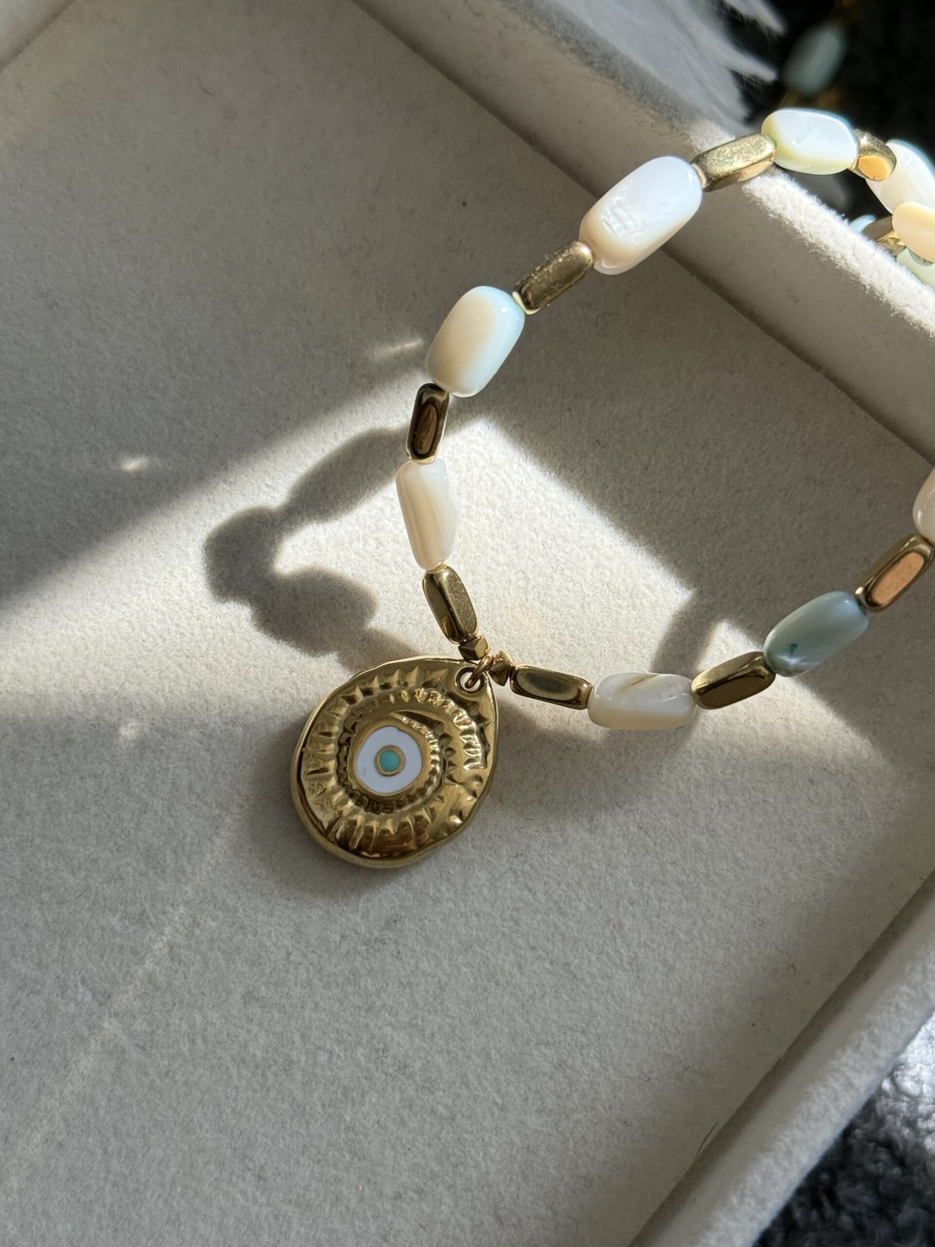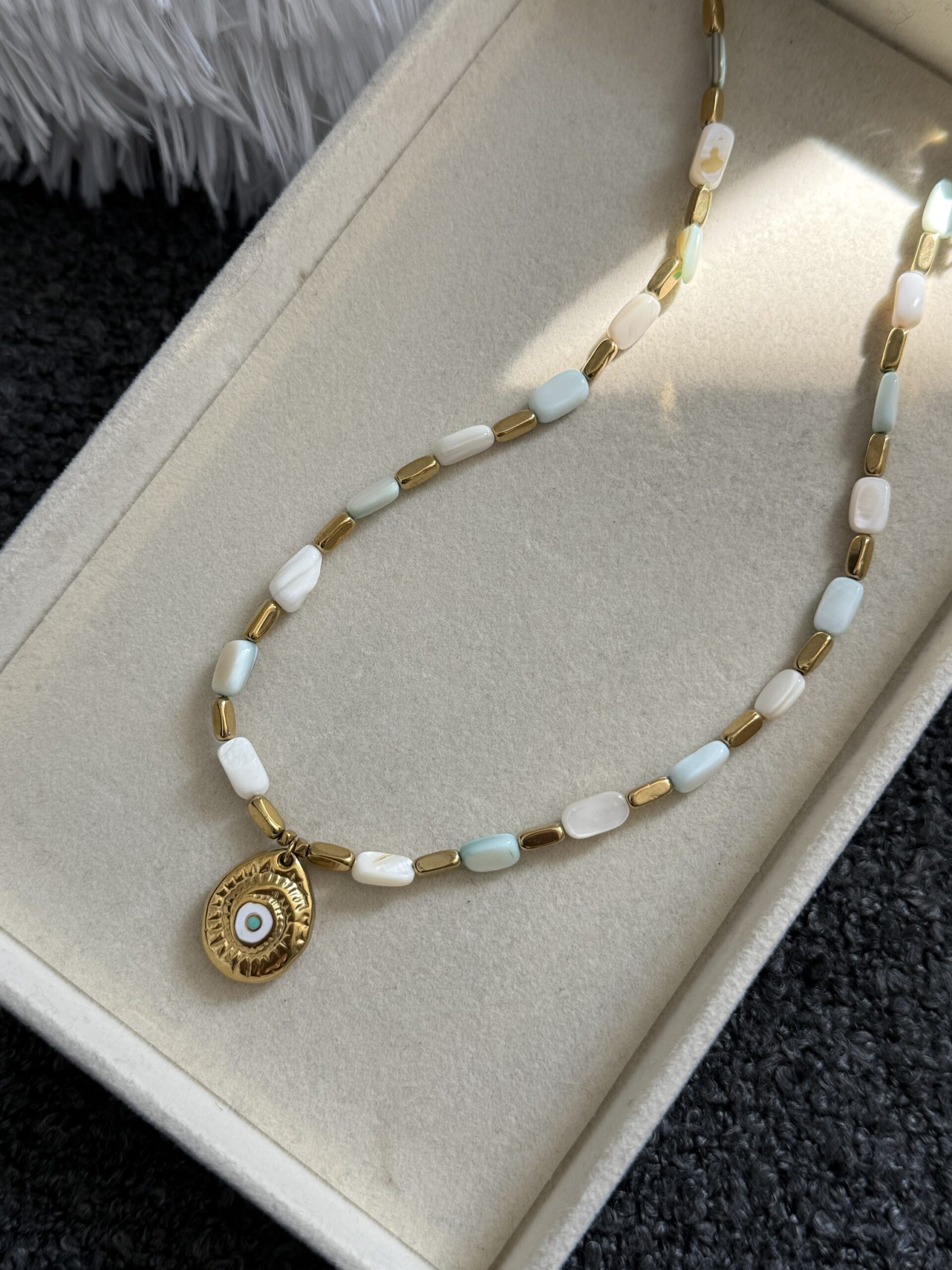Ατσάλινο 100% χειροποίητο κολιέ με χάντρες αιματίτη και φίλντισι. Το κρεμαστο είναι ατσάλινο.