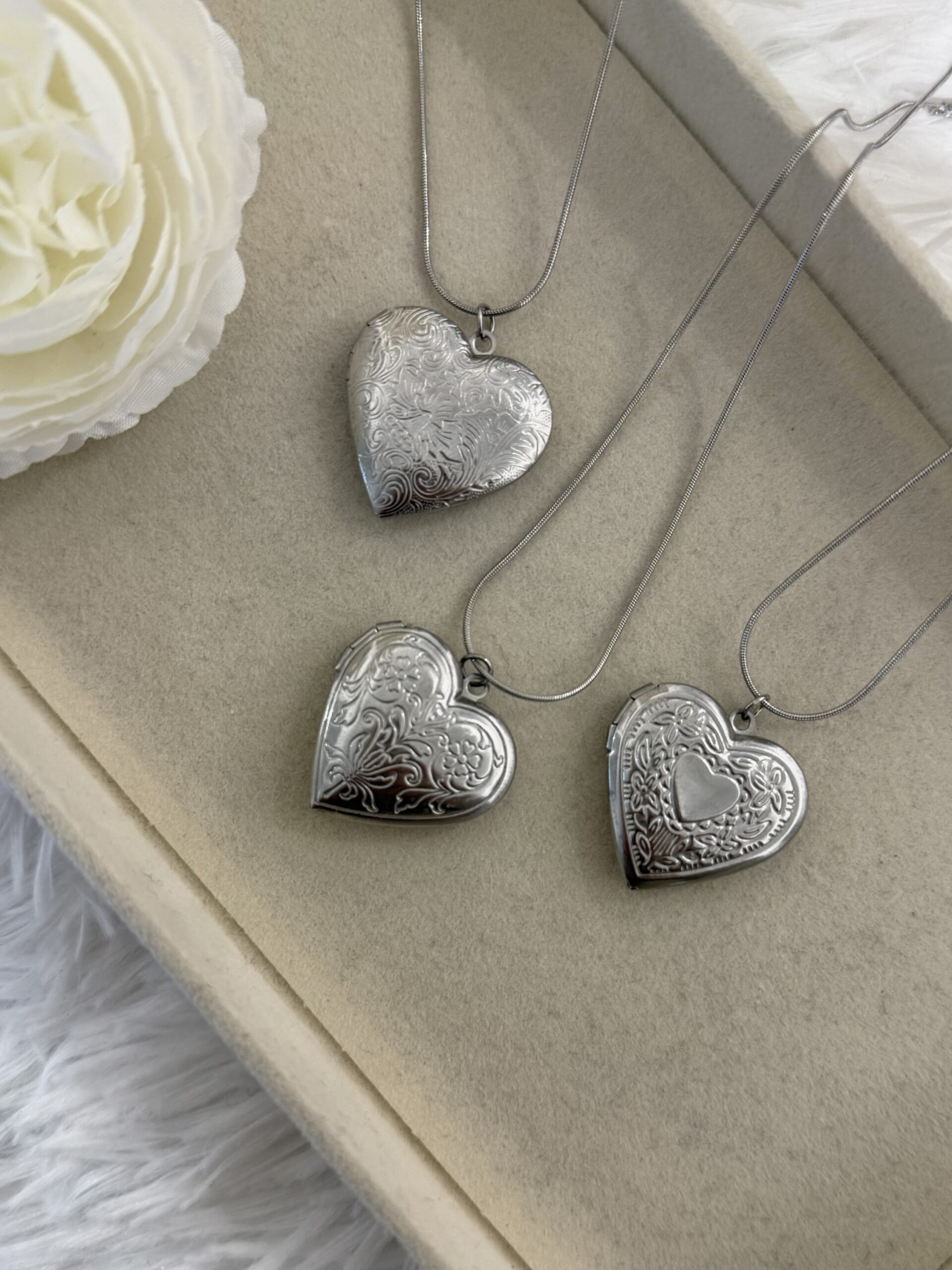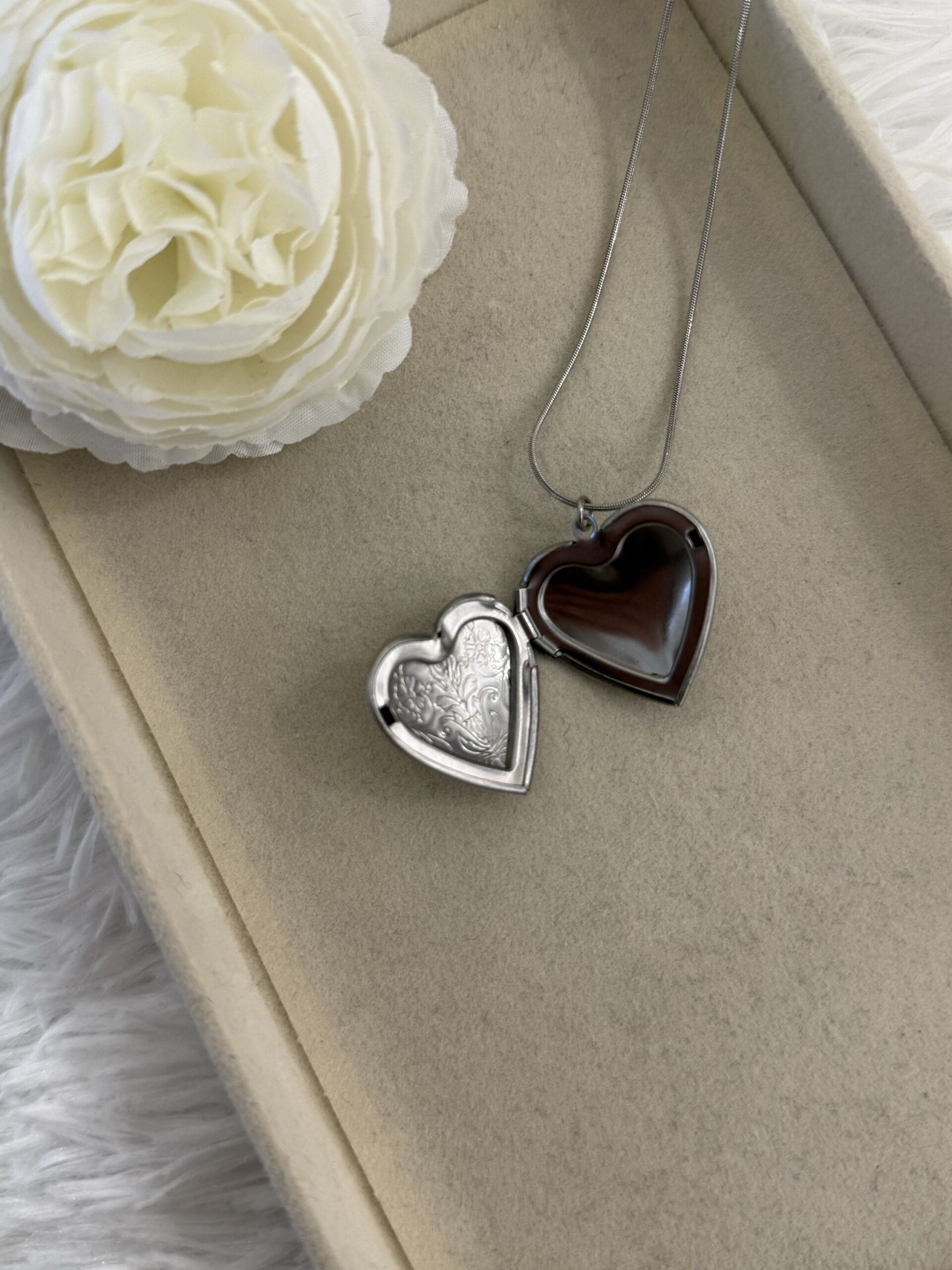 Ατσάλινα κολιέ με κρεμαστό που ανοίγει και snake λεπτή αλυσίδα.