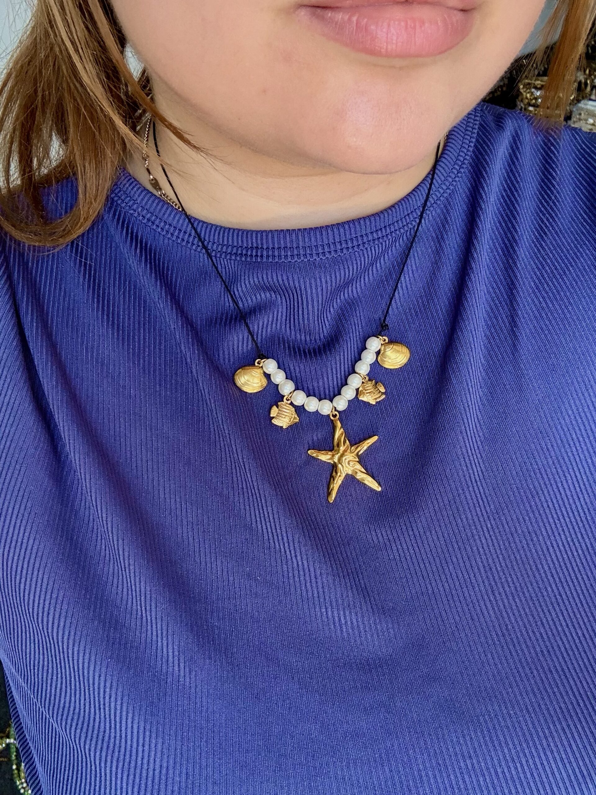 Ατσάλινο 100% χειροποίητο κολιέ με ακρυλικές πέρλες, ατσάλινα κρεμαστά και σκοινί..