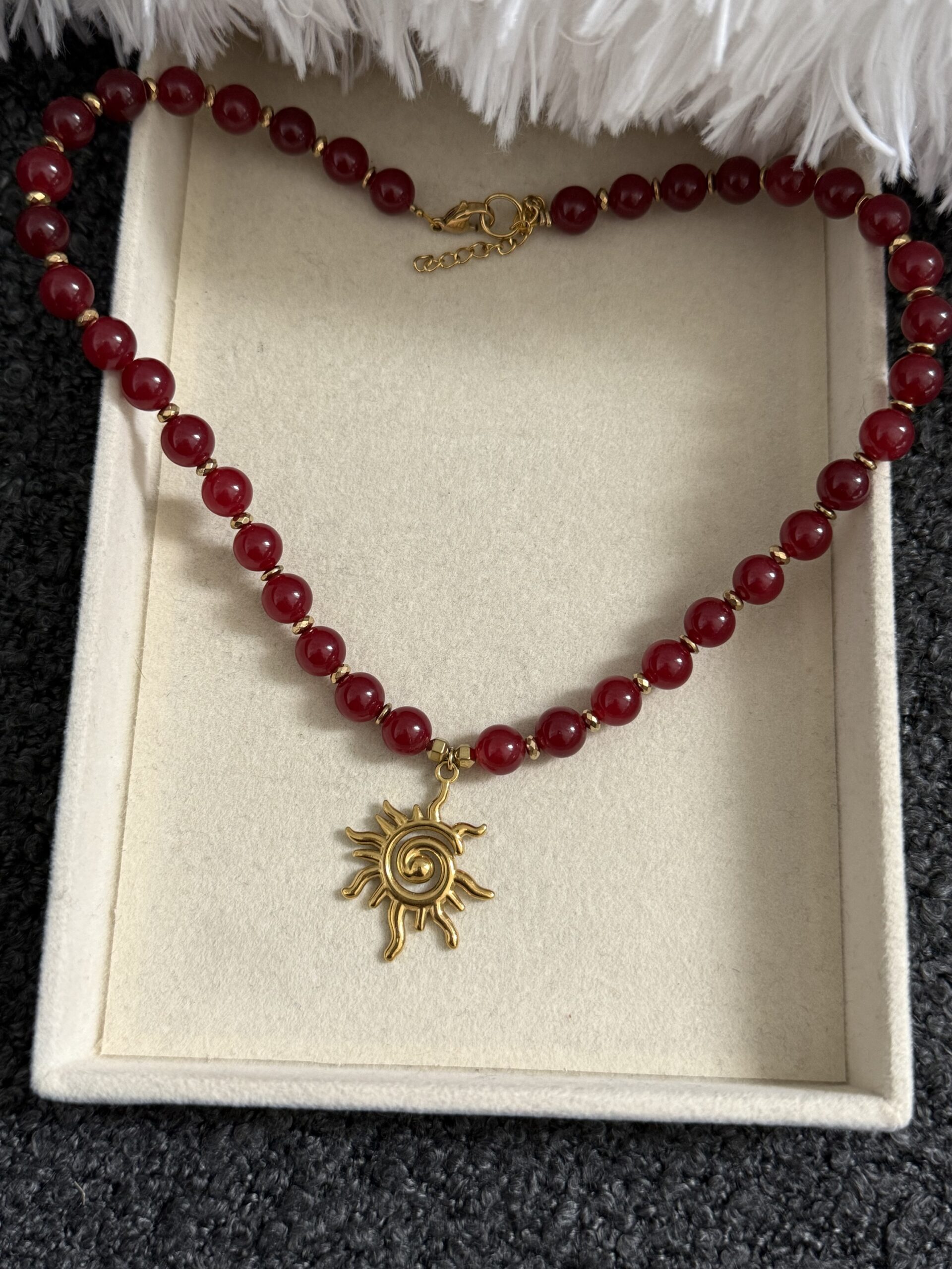 Ατσάλινο 100% χειροποίητο κολιέ με χάντρες καρνεολης και αιματίτη. Τα κρεμαστά είναι ατσάλινα.