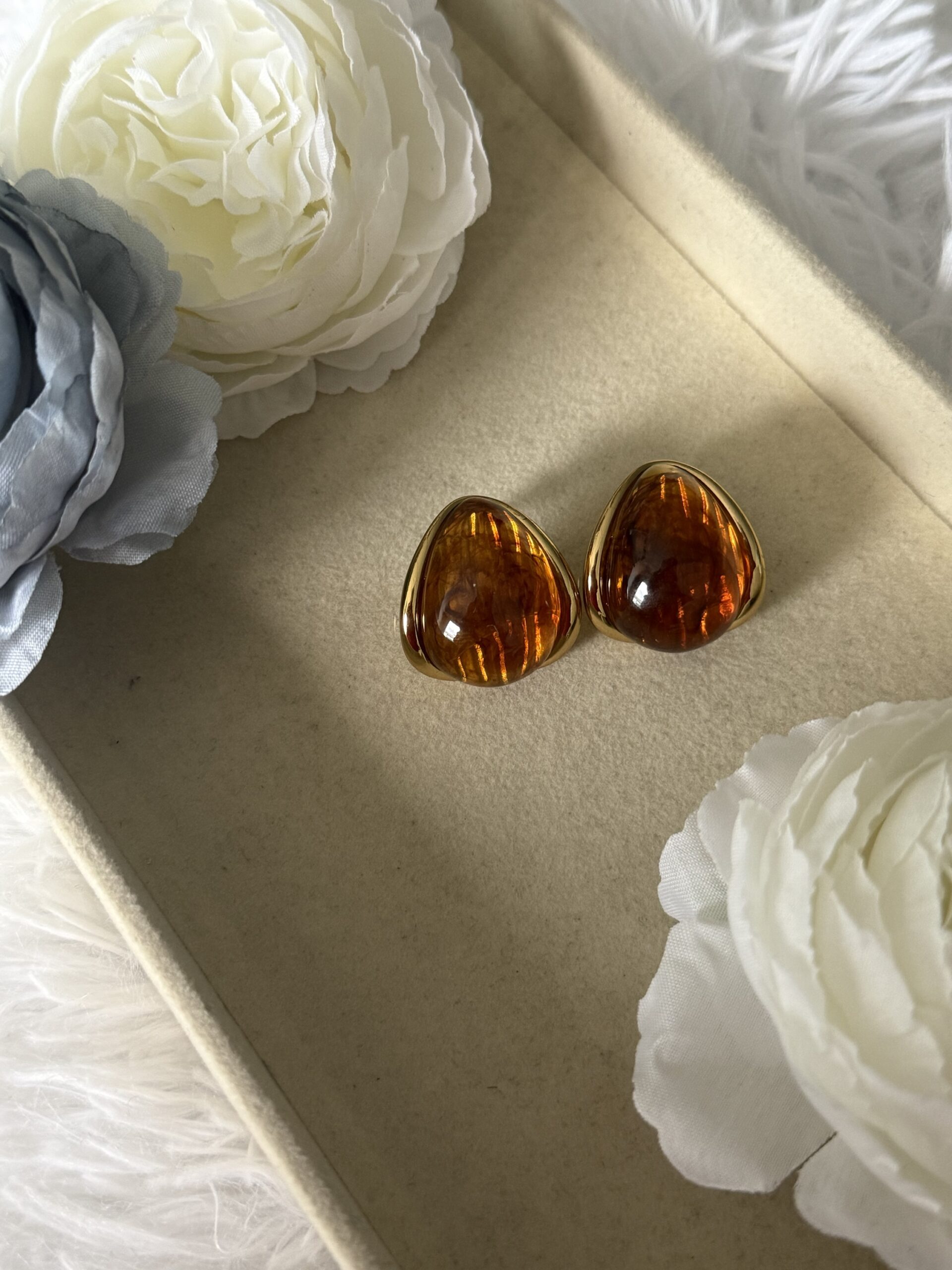 Ατσάλινα σκουλαρίκια σε καφέ χρώμα. Ελαφριά. Μέγεθος: 2×3 εκατοστά.