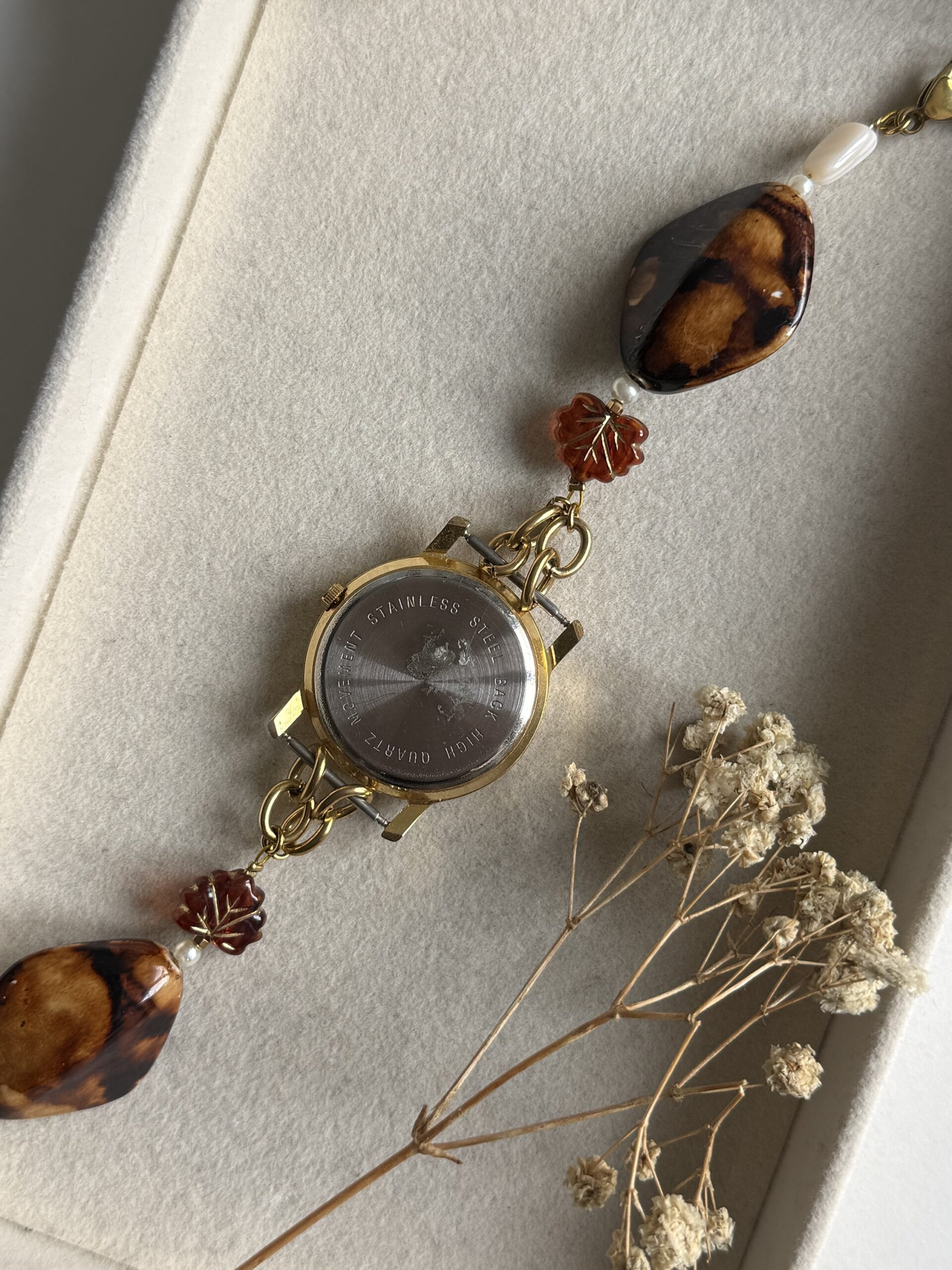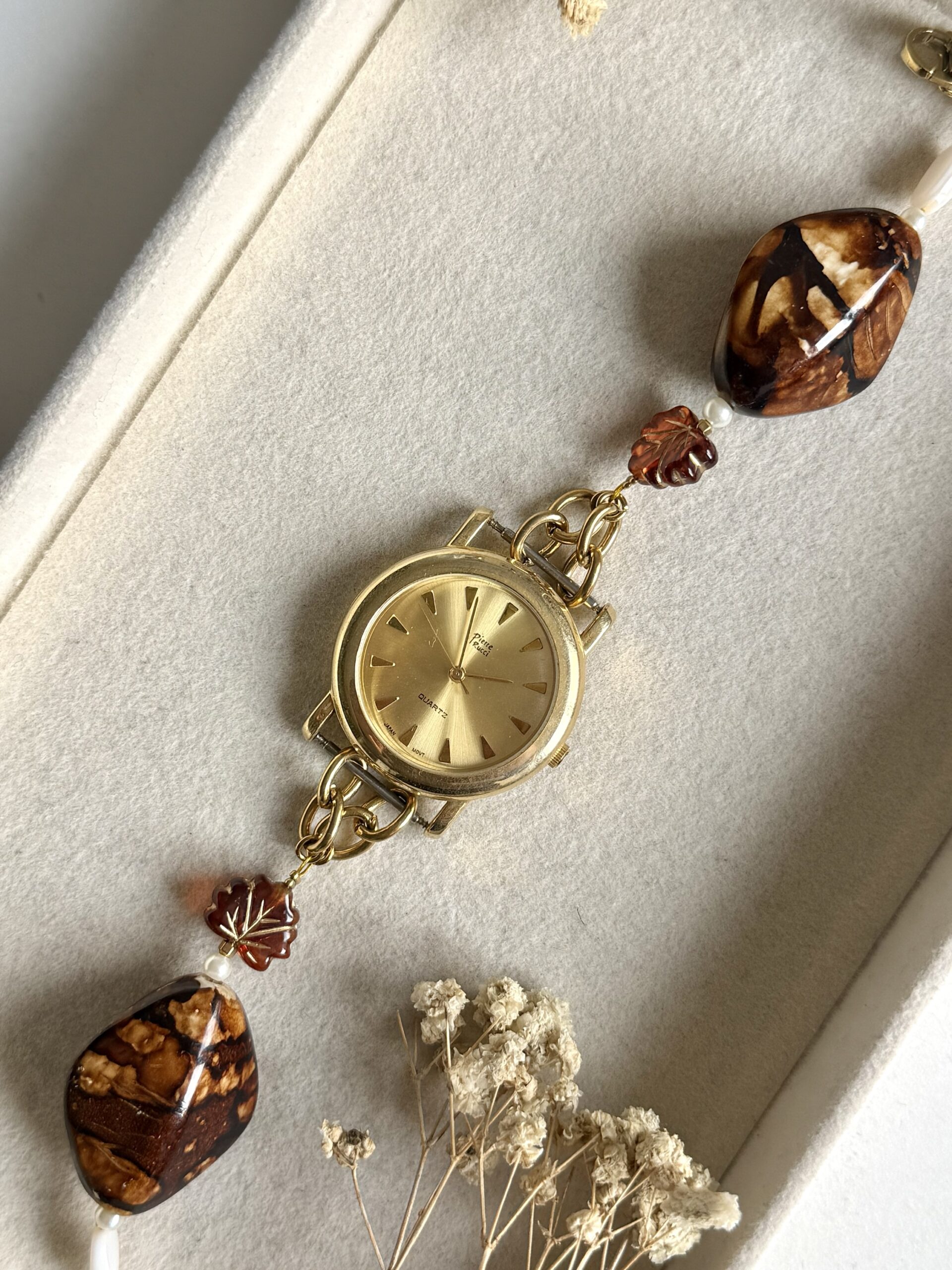 100% χειροποίητο ρολόι/κοσμημα. Φτιαγμένο από άλλο παλιό ρολόι. Λειτουργεί. Φτιαγμένο με ατσάλινη αλυσίδα και χάντρες. Ατσάλινο πίσω μέρος.