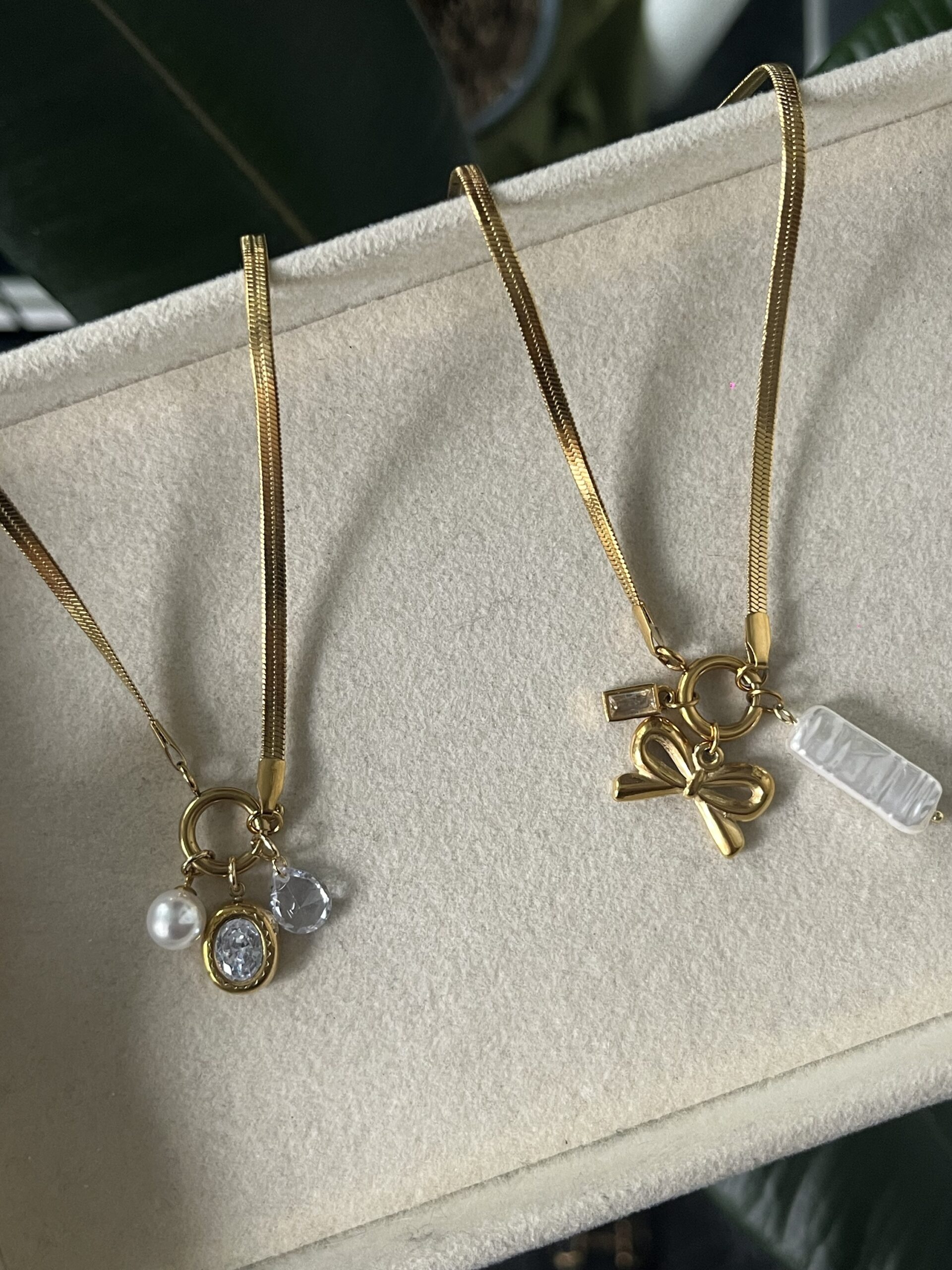 Ατσάλινα κολιέ με αλυσίδα snake και διάφορα κρεμαστά. Το κούμπωμα τους είναι μπροστά. Τα κρεμαστά μπορούν να αφαιρεθούν εύκολα και να τα αλλάξετε θέση.