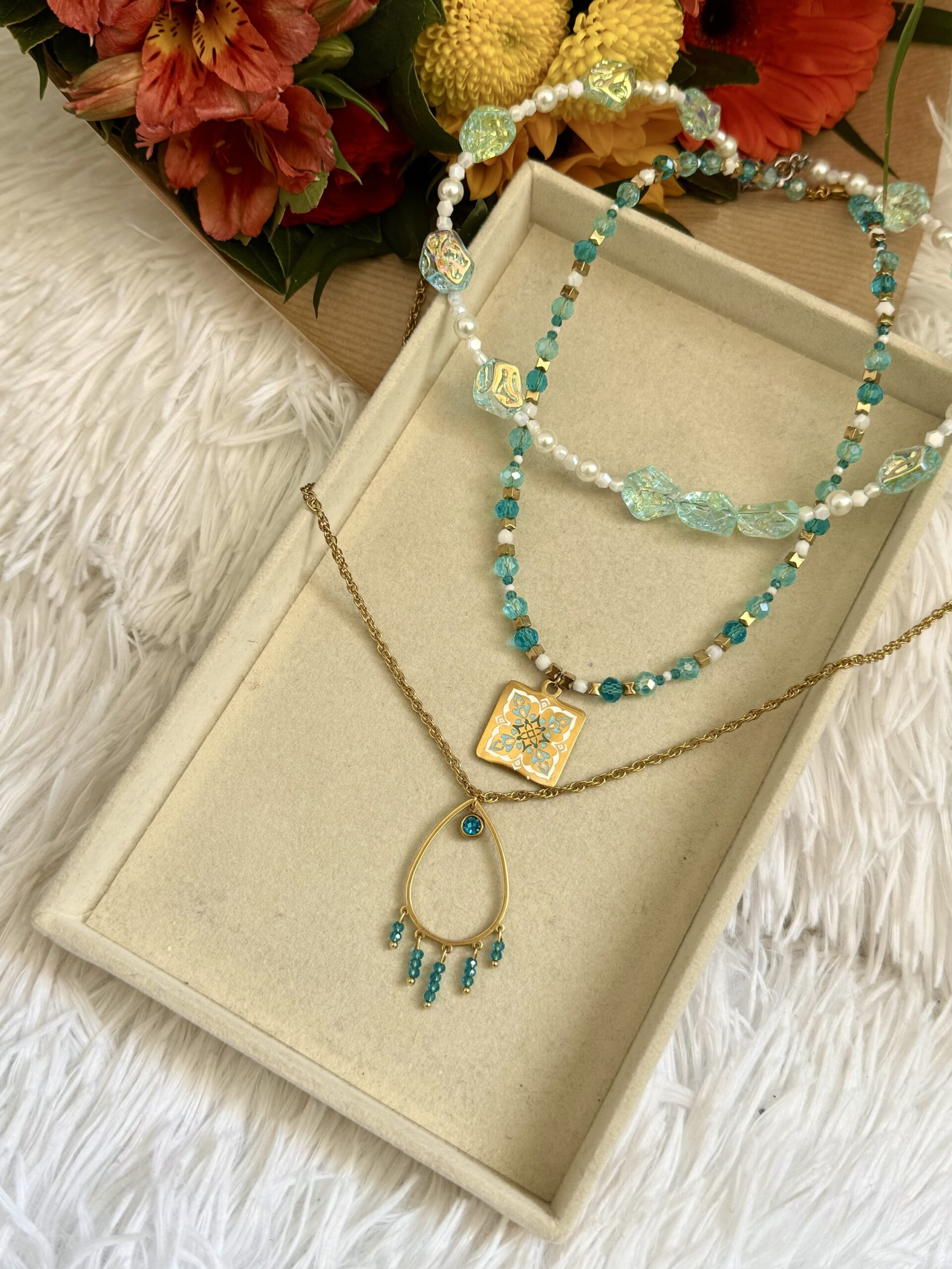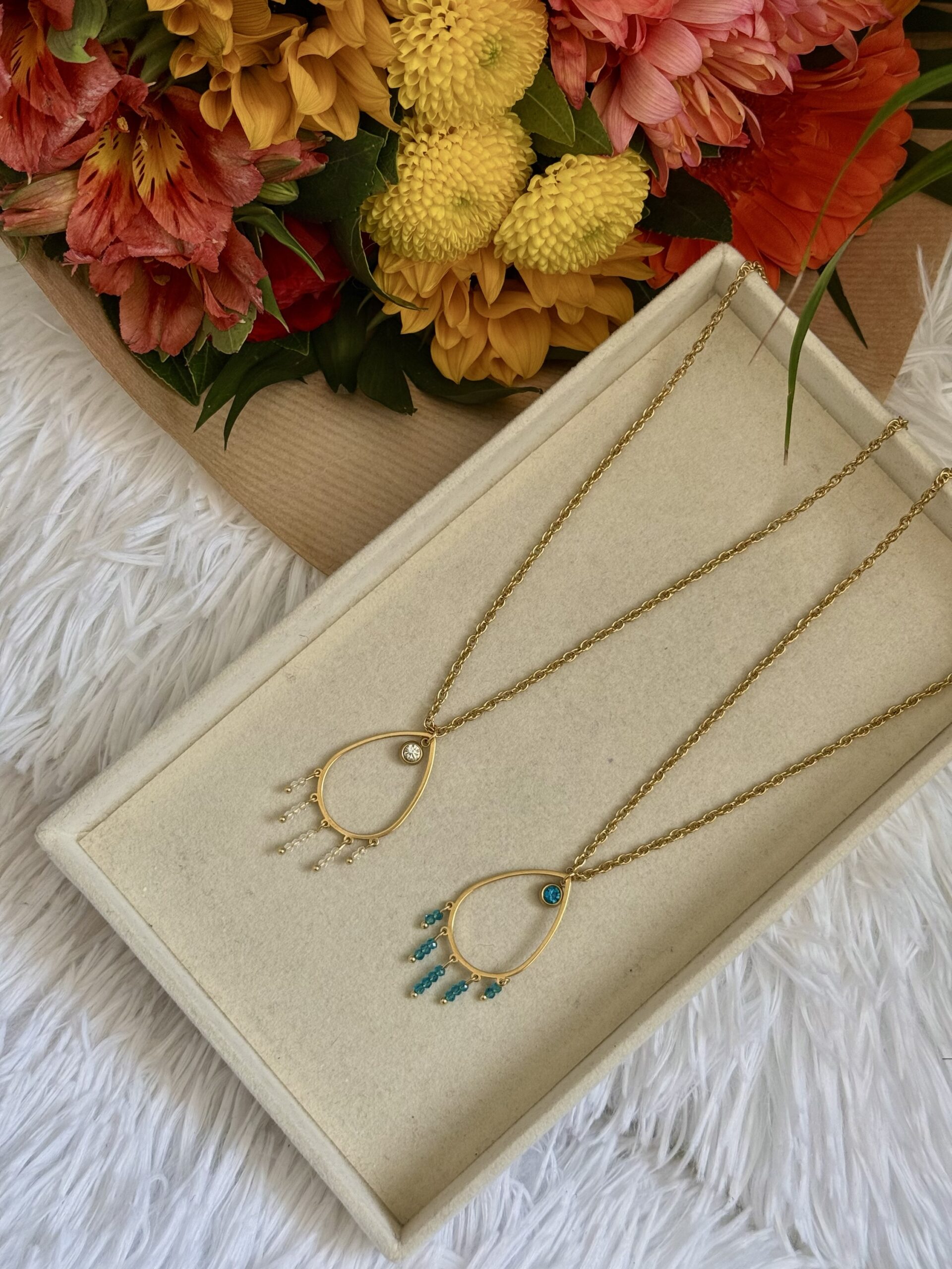 Ατσάλινο 100% χειροποίητο κολιέ με διάφανες/μπλε χάντρες.