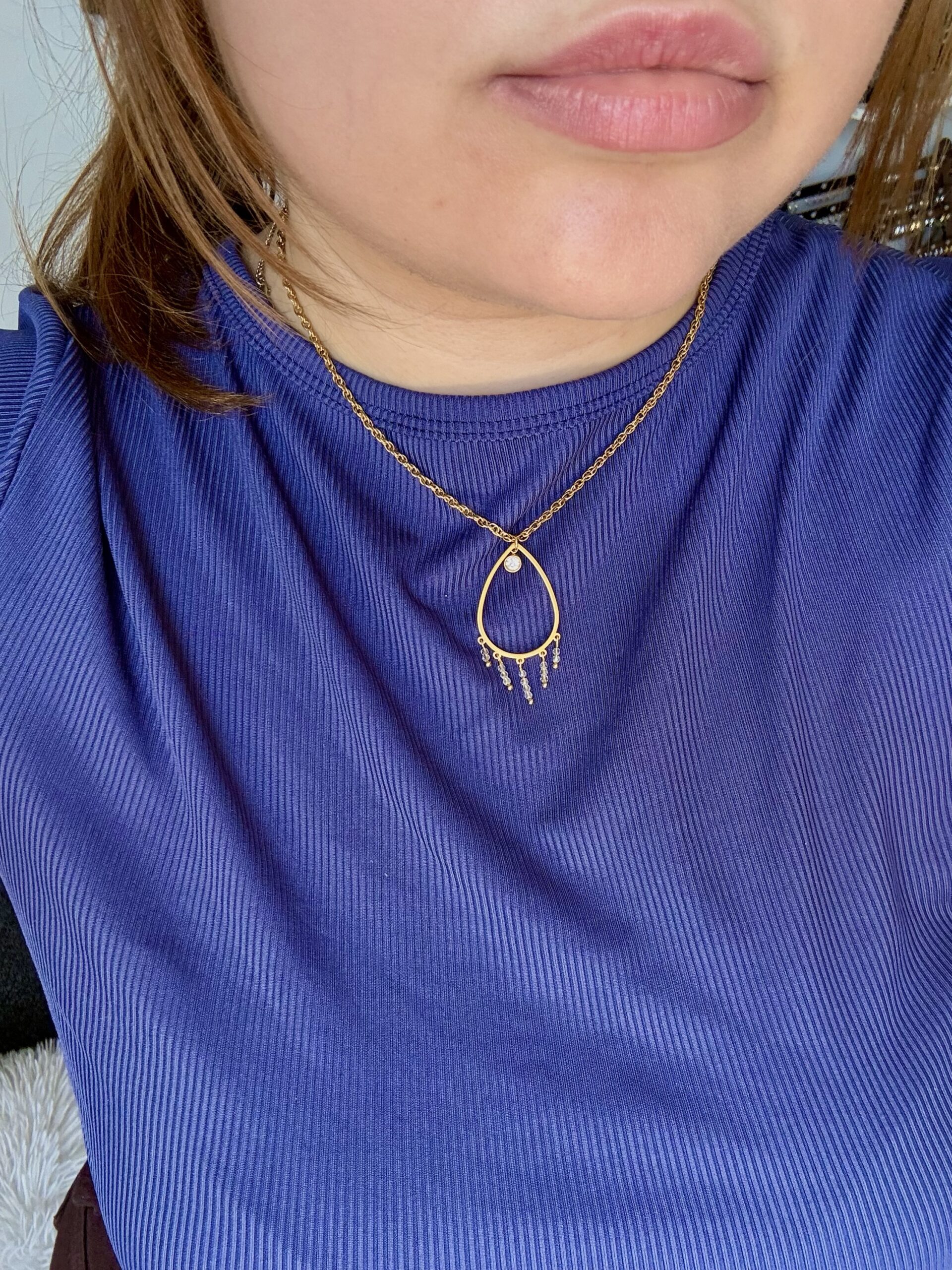 Ατσάλινο 100% χειροποίητο κολιέ με διάφανες/μπλε χάντρες. Μέγεθος: 42 εκατοστά με 5 εκατοστά επιμήκυνση. κρεμαστό: 4,5 εκατοστά.