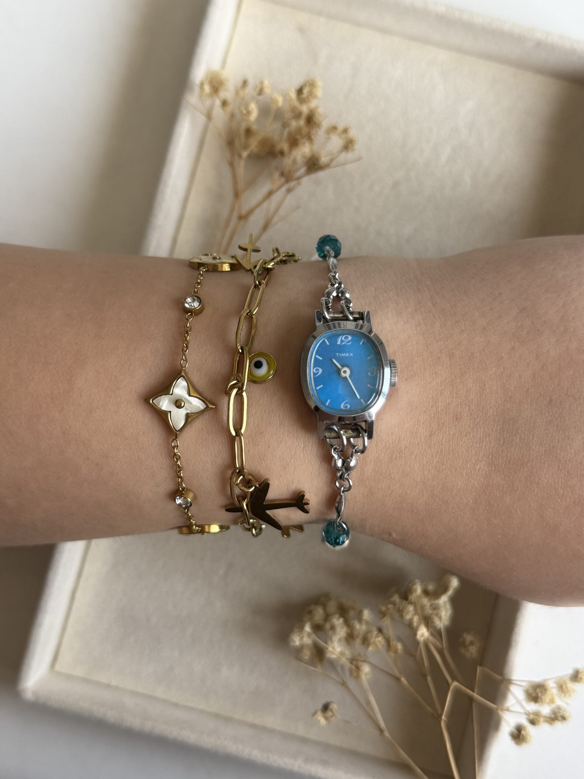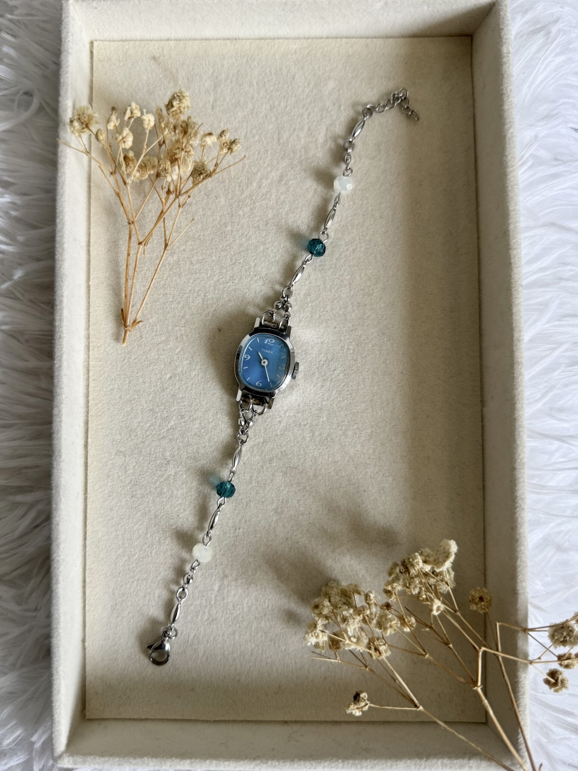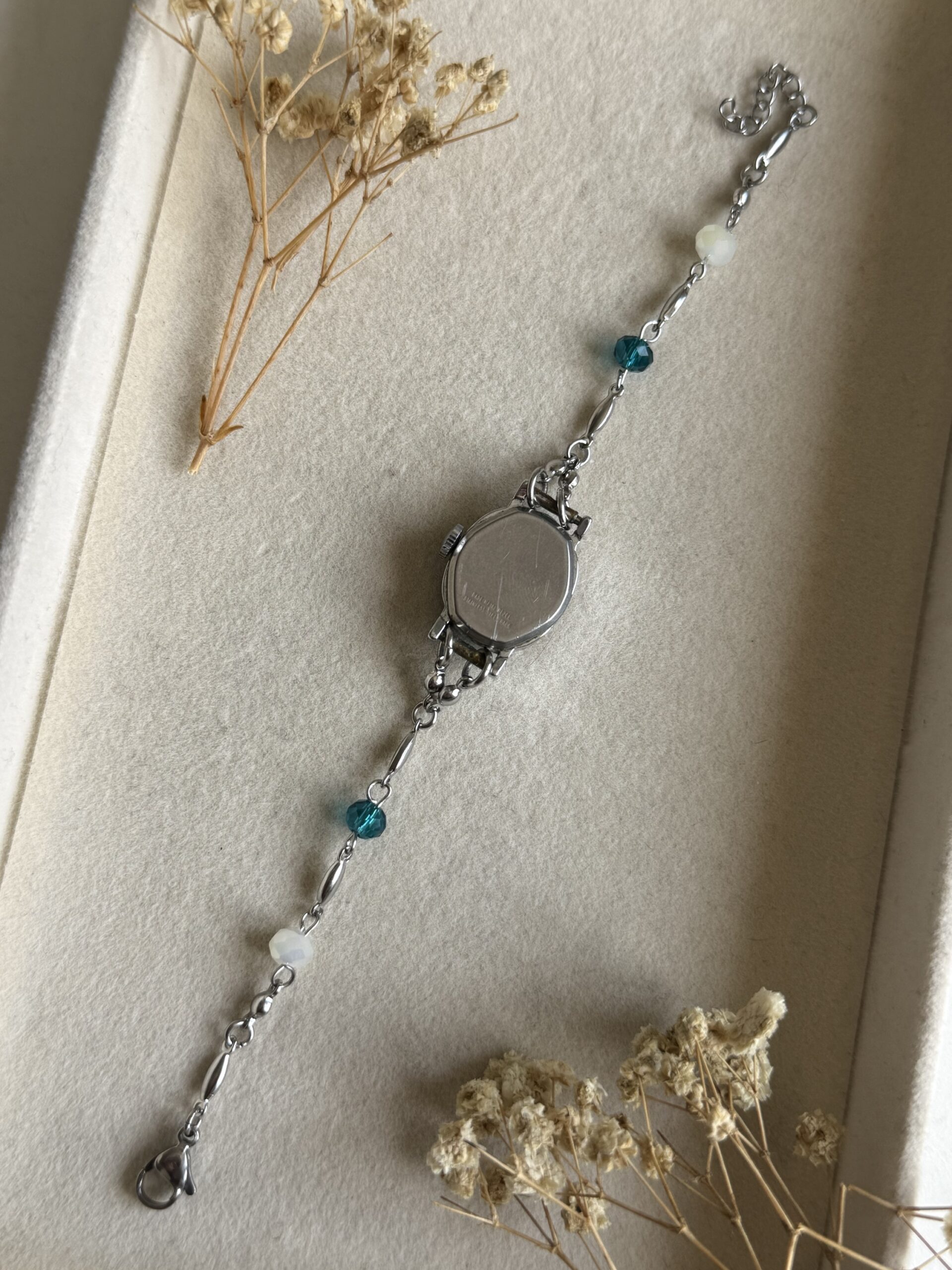 100% χειροποίητο ρολόι/κοσμημα. Φτιαγμένο από άλλο παλιό ρολόι. Ολα τα εξαρτήματα είναι ατσάλινα. Δεν λειτουργεί. Για να λειτουργήσει χρειάζεται αλλαγή μπαταρίας ή επισκευή μηχανισμού.