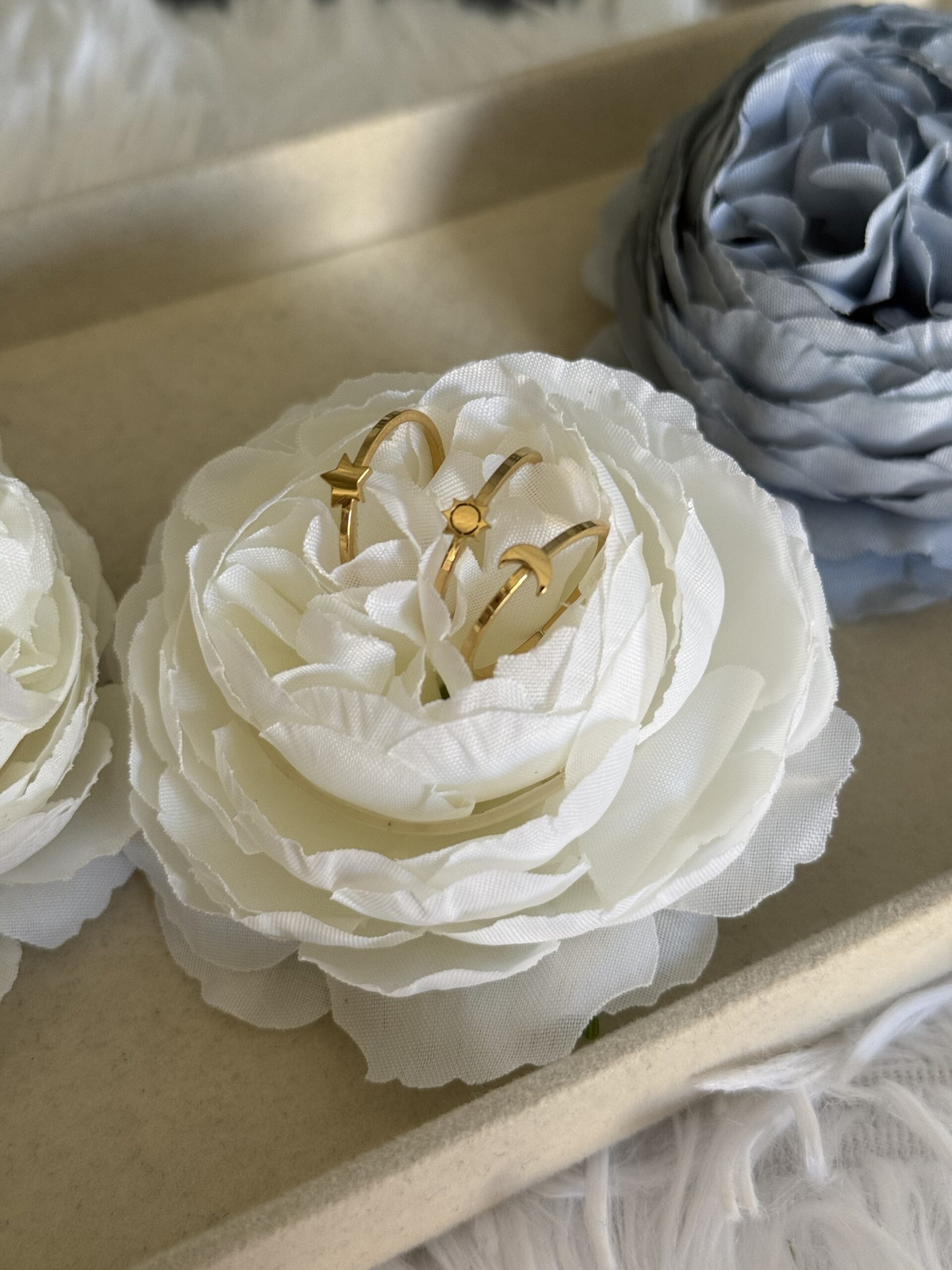 Ατσάλινα δαχτυλίδια με αυξομείωση μεγέθους σε σχήμα φεγγάρι, αστέρι και ήλιος.