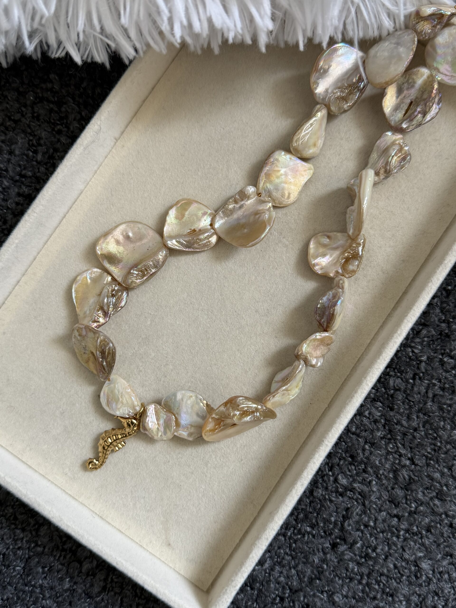 Ατσάλινο 100% χειροποίητο κολιέ με χάντρες φίλντισι και κρεμαστό ιππόκαμπος.