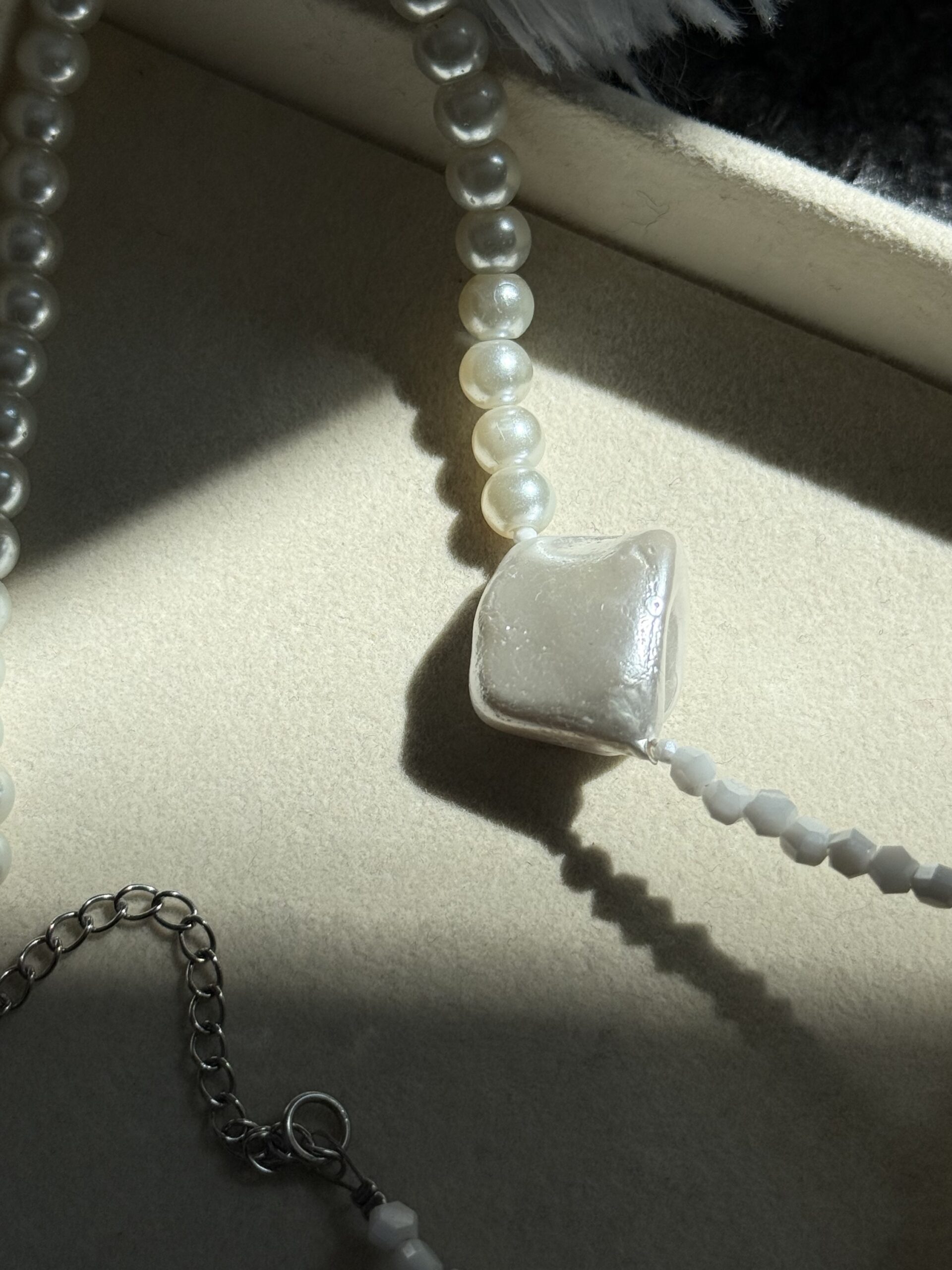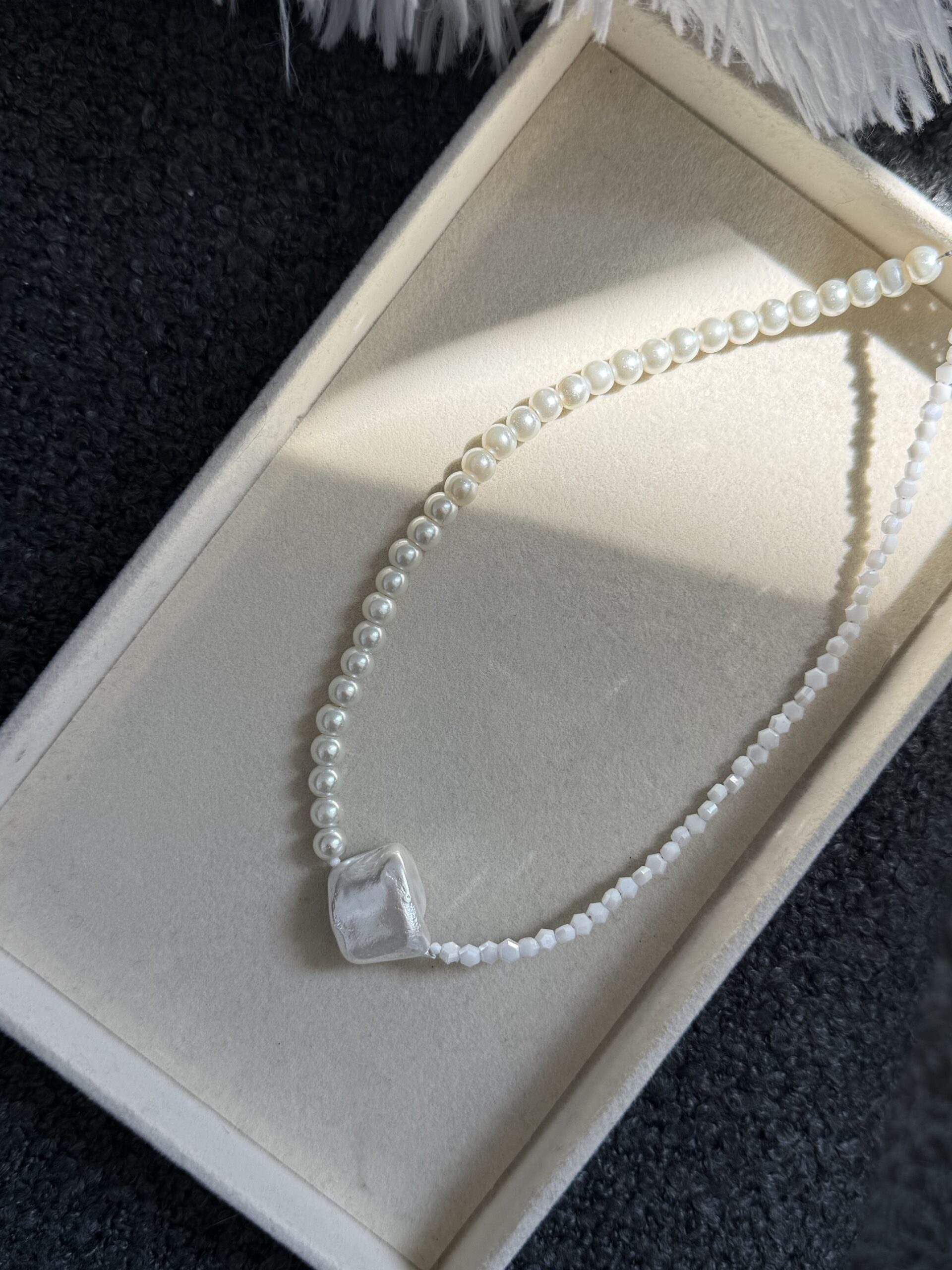 Ατσάλινο 100% χειροποίητο κολιέ με λευκές χάντρες και ακρυλικές πέρλες.